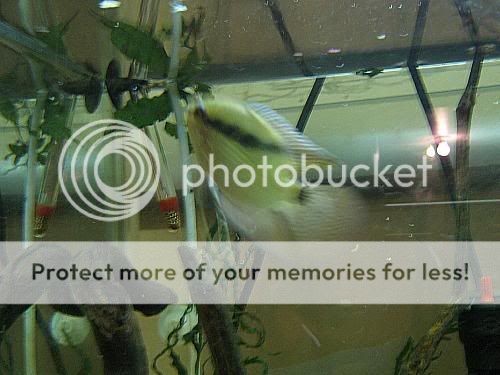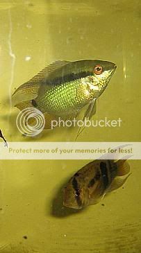 And here he is with his best bud, a Keyhole Cichlid