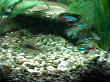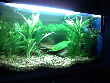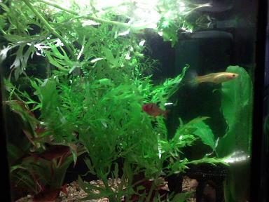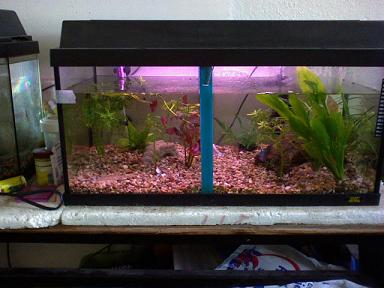 The bettas tank: On the right houses two girls and two corycats, on the left is our newest male. It's a 20g tank devided (as you can see). Also is some pics of the hex, or what is in it. Haven't got any full tank shots around at the mo.
