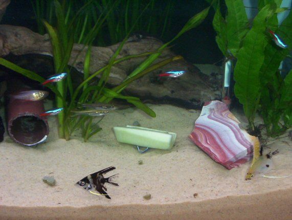 btw for info if anyone wants to know, this is a 46 gal tank, obviously sand substrate, fish in it are...