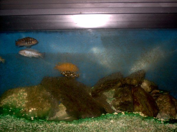 Here are some pics of my various fish and tanks as you can see i have a real algae problem in the malawi tank i clean everyday any ideas. goldie my albino plec who is about 12 inches now