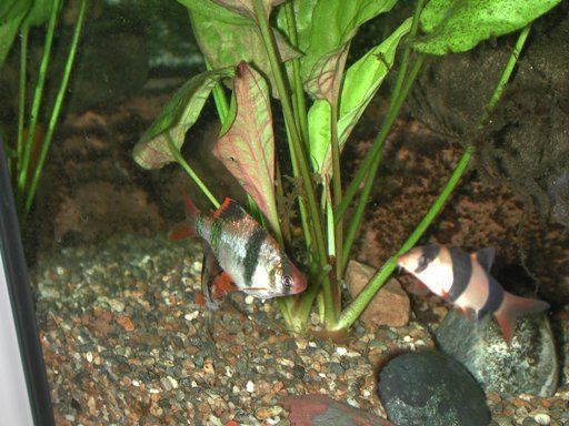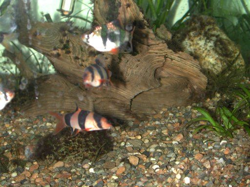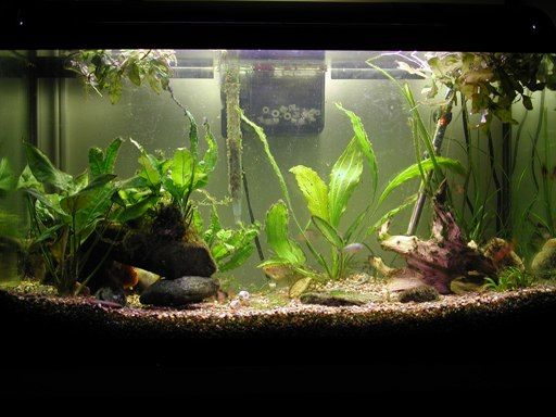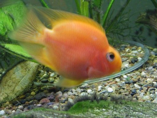 These are some pictures of my fish tank and fish. The gourami and blood parrot are both fish I rescued from tanks where they were being attacked constantly. They are nervous and hide in caves most of the time now. The floating plants are there to make my fish comfortable. They drift around slowly, so they don't shade the other plants too much.