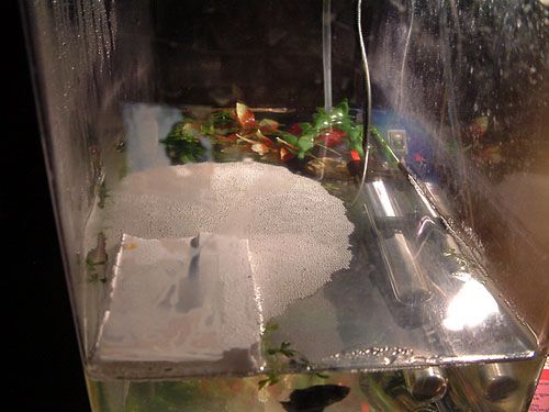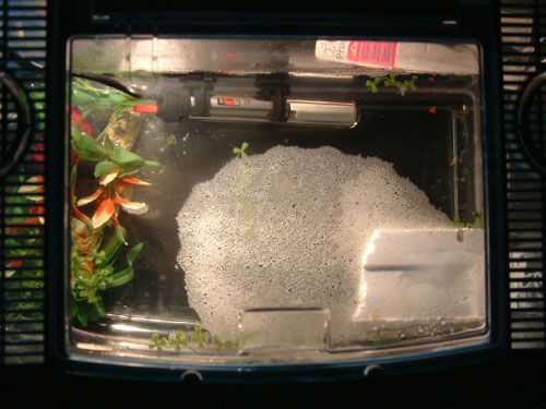 After the mishap with the fry batch while I was away, and after cleaning out the spawn tank I decided to let my male royal back into the spawn tank (I usually let the males live in the tank for up to a week before a spawn, just my way). Well, only a few hours later he had a HUGE bubblenest, 5" diameter.