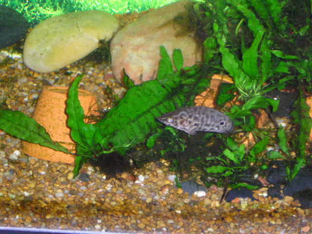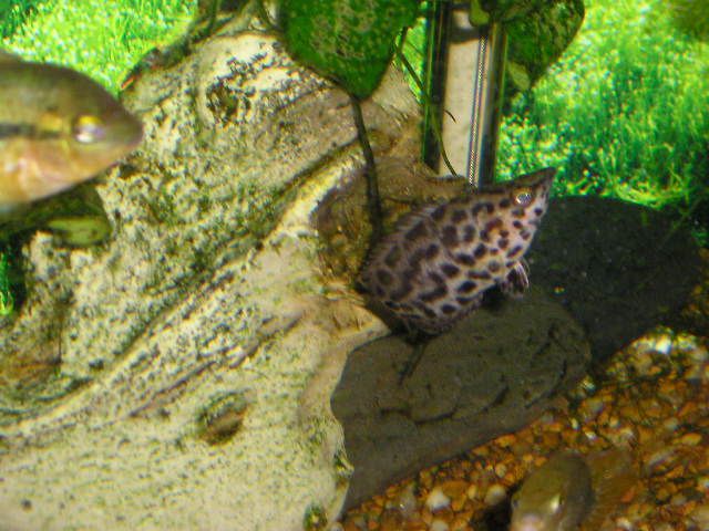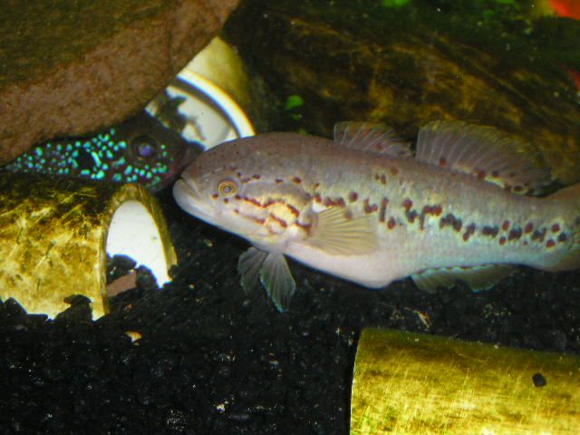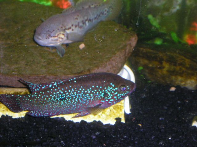 It is not advised to keep a gudgeon with a Jewel cichlid , but given the jewels age and his well behaved demeanor over the last few years , we're going to give this a shot , the jewel has been in with rainbow cichlids 1/2 his size for that last five months with all good behavior