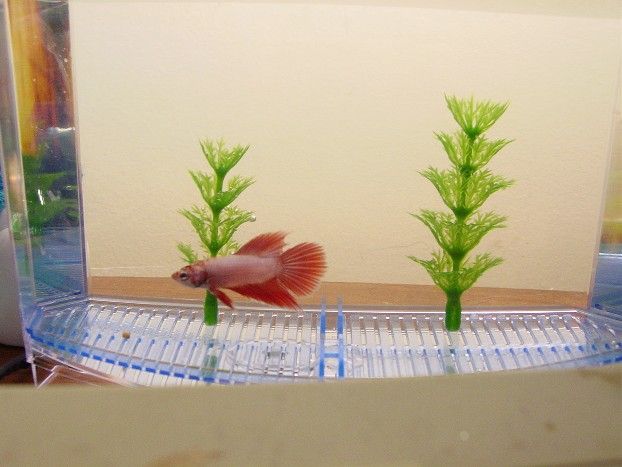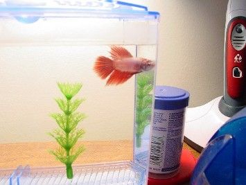 Awww he's cute, however the tank you have him in only holds about 1/4 of a gallon, you should really look into getting him a larger tank. Around 5 gallons would be nice.