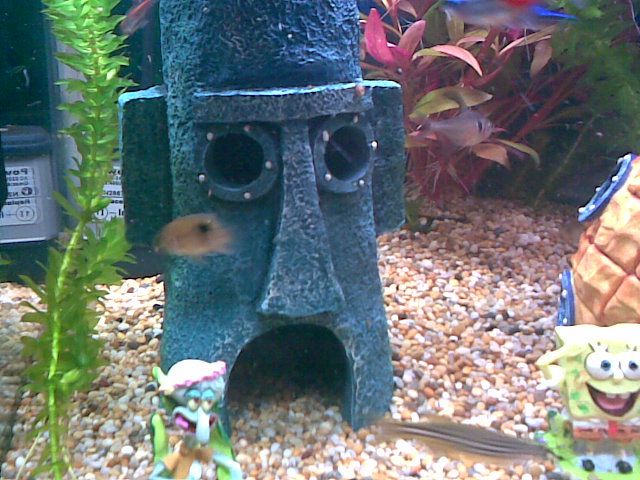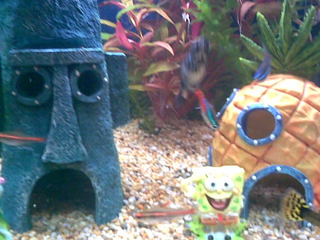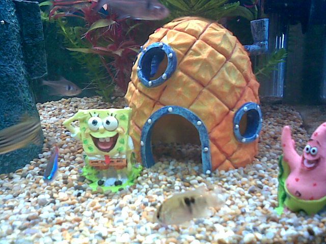 Very fun looking tank, not the kinda thing I'd go for but my daughter would love it. Everytime we go to one of my lfs she always runs over to the spongebob & dora tanks and I just walk right past her saying 'no and no, not a chance'. I personally prefer the natural look but I used to have an 'oriental theme' in one of my tanks with pagodas and bridges and things, since going 'natural' I've never looked back.