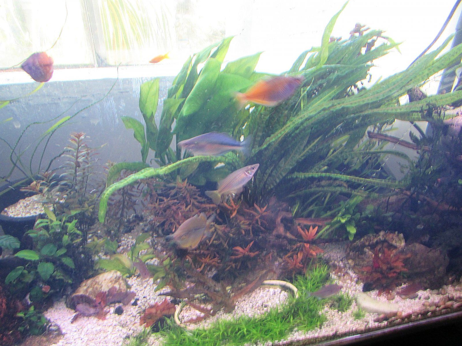 Now that days are longer and sunny? lights that go on at 8:30 am go off at 1pm as sun lights up the whole tank until 4pm or so...lights go back on until 6pm..the day is over for the lights. More to say on the history later.