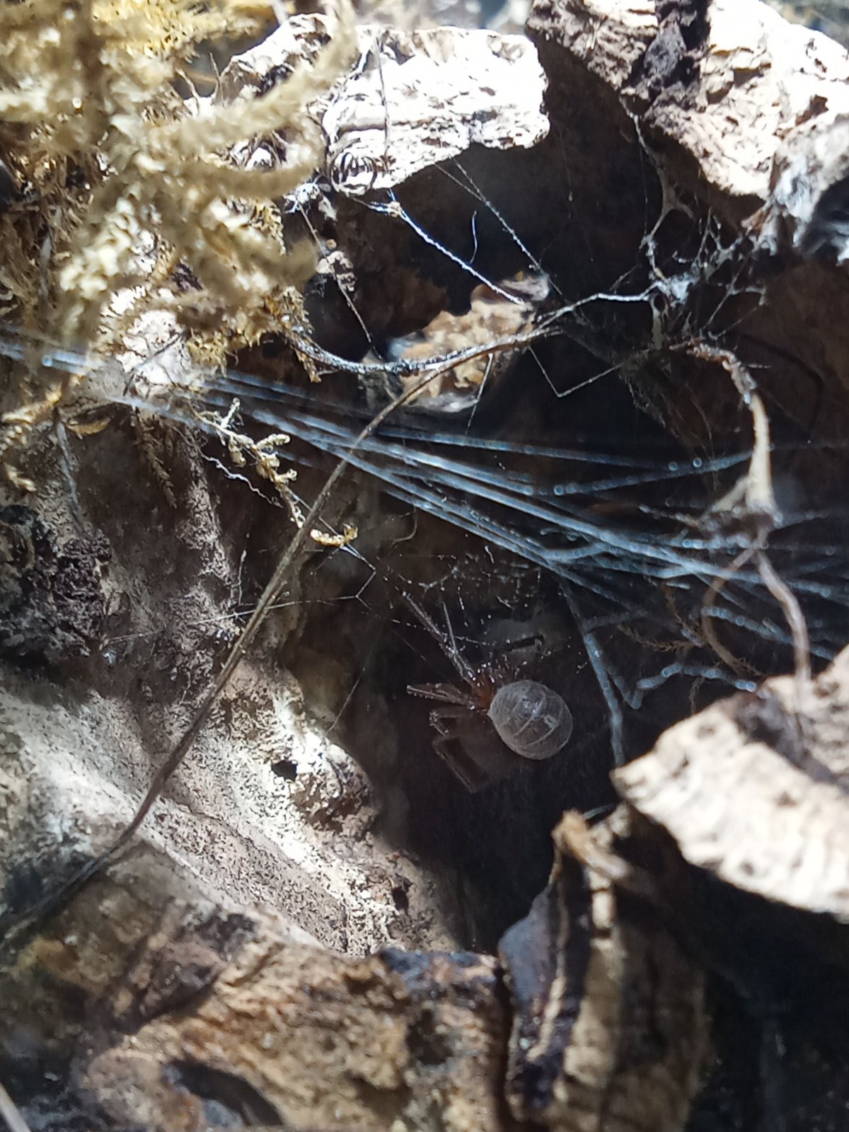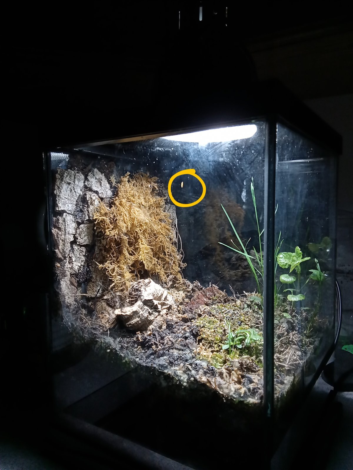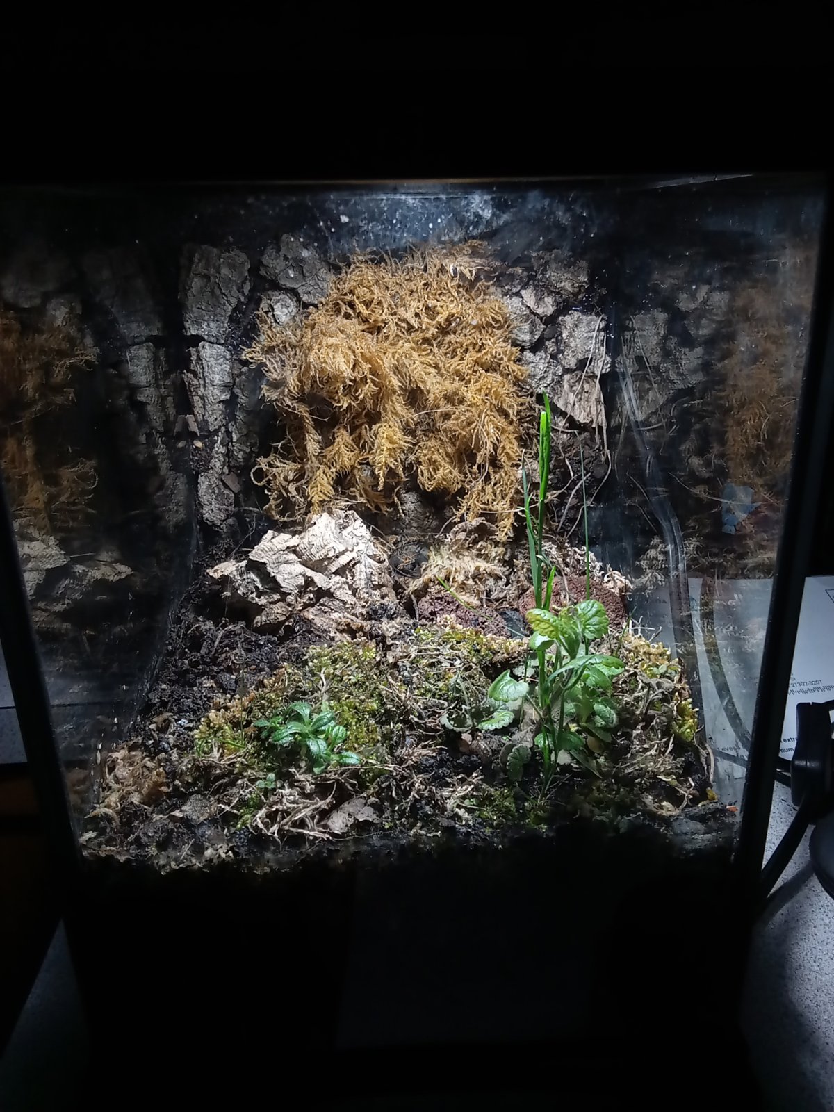 Originally called "Arid Duff," I decided to name it after one of my favorite moses, Star Moss(which makes up the habitats floor). The background is tree bark and Fern Moss. The main plant that stretches up into the canopy is some kind of weed. I don't know what it is, but it makes the tank look awesome! Currently there's only a few flies and some Isopods in here right now, plus a camera shy spider that leaves webs in the tanks canopy. But that'll change this spring.