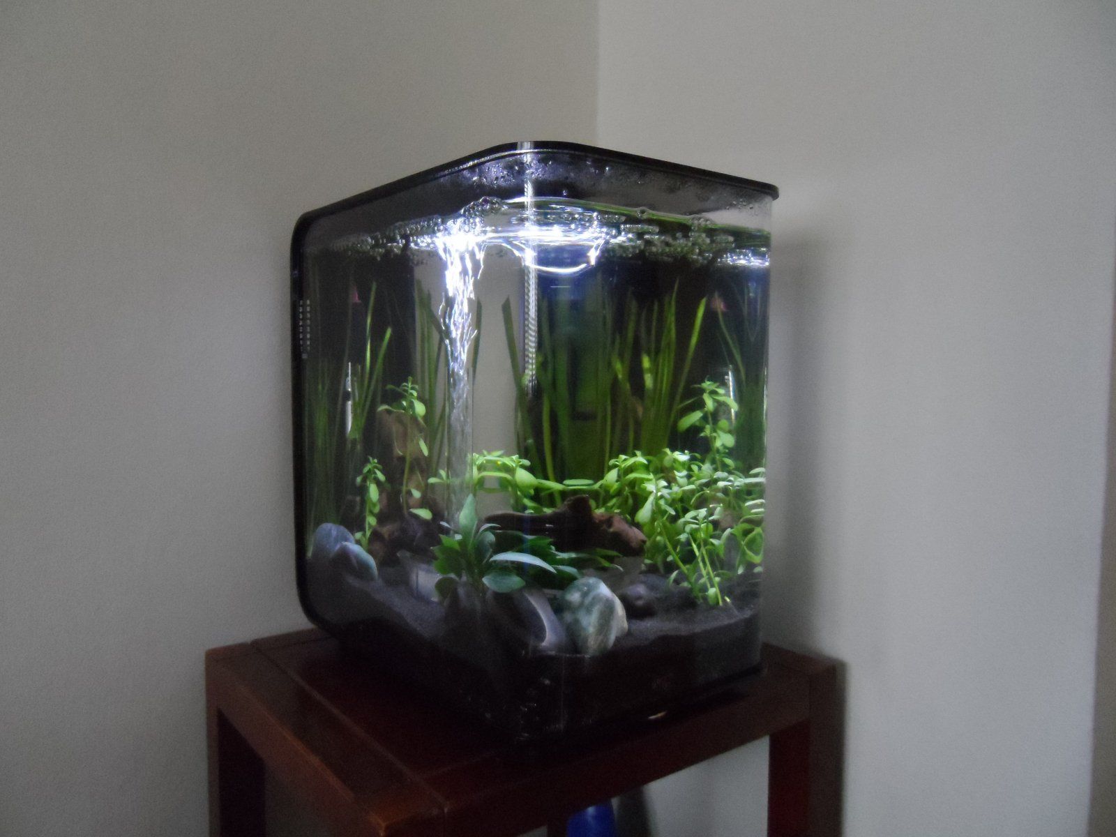 Work from home might be extended until end of the year, so I impulsively bought the only decent-sized tank that can fit on my work table. It's 35Lx17Wx22H cm. Basically a slim tank with (hopefully) enough length and height for nano fish to swim/dart. It will have a piece of wood or stone/s. It will be planted. It will have a sponge filter. I already have a neo shrimp tank, so I was thinking I could do with some fish in this one. The shop owner suggested a betta, to which I replied a very stern, "No."