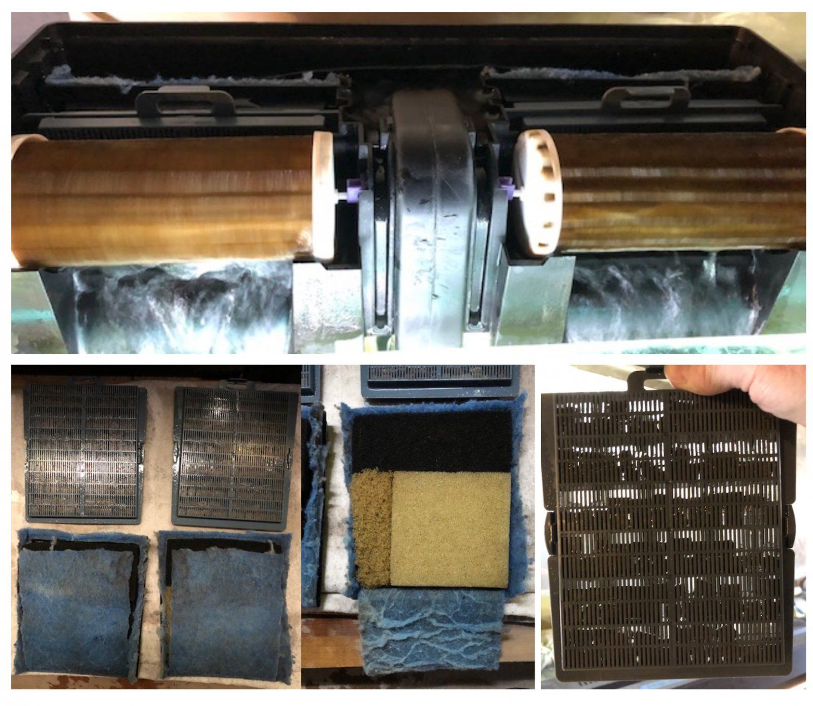 as well I use a sponge and these bio rings all you do is when you change water keep the dirty water squeeze the sponge a couple times then rub the bio rings.