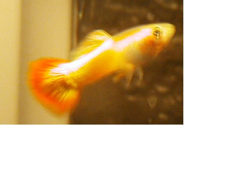 here is my guppie, one of my males to breed. he is a mix of platie and guppie to make him larger and have that red on him. hope u like him!!!