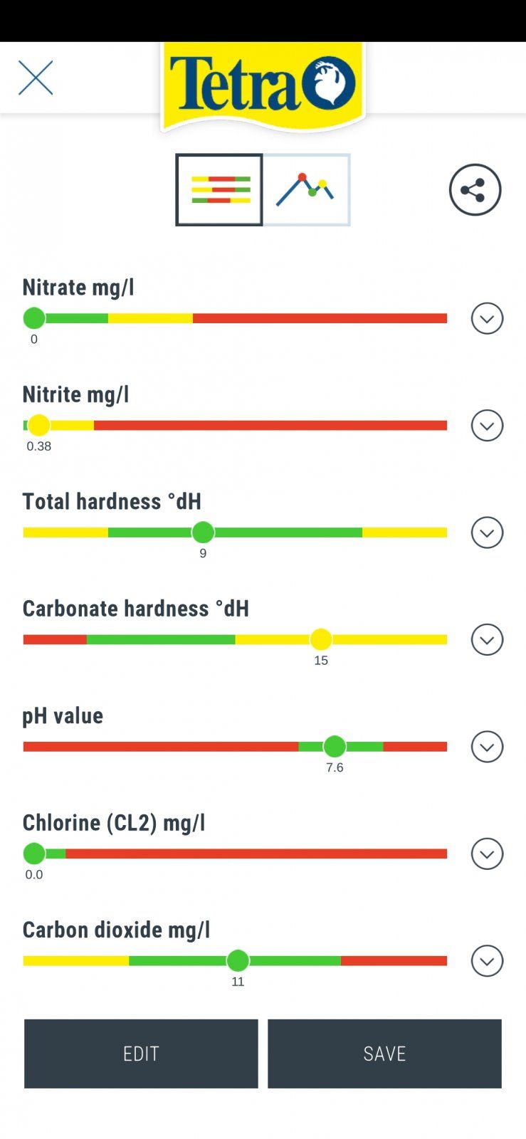 Ammonia 0 nitrite 0 nitrate 0 ph 7.5 max ckh was 7 drops or 124.6ppm gh was 9 drops or 160.2