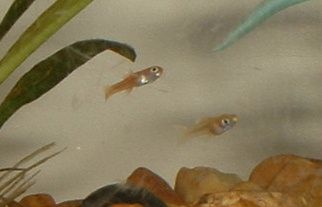 Here they are at 6 months old! Precious is the cream colored swordtail and Peggy is the orange one!