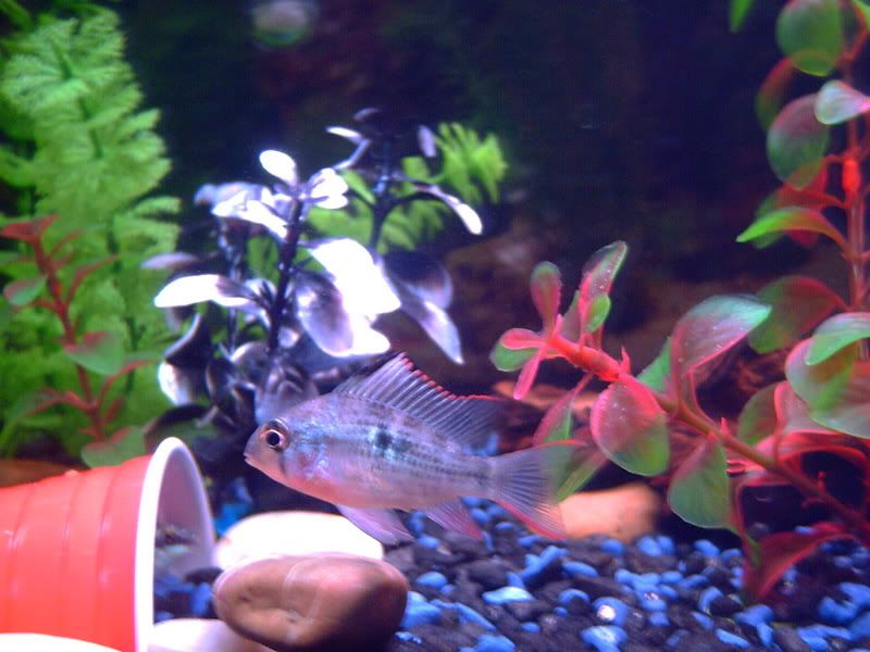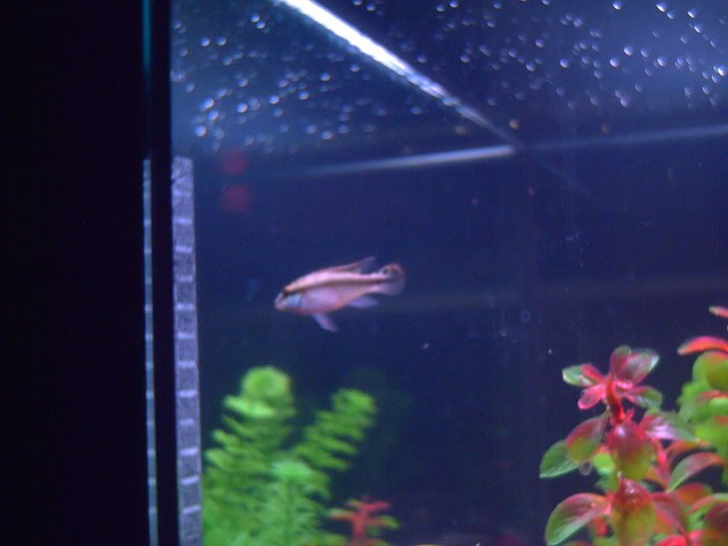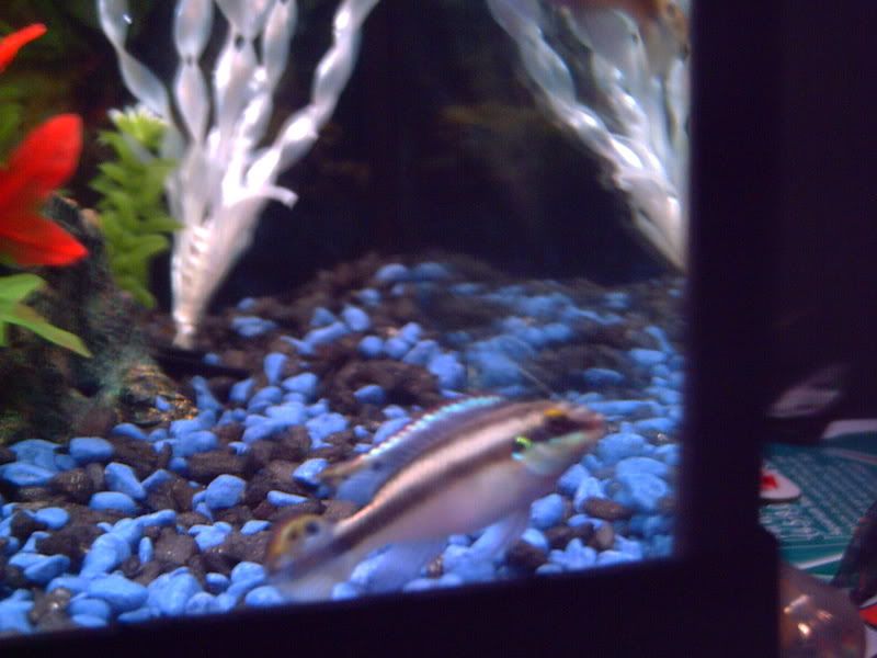 Current tank inhabitants: 1 Bolivian Ram, 1 Kribensis Cichlid, 4 Gold barbs