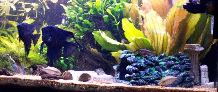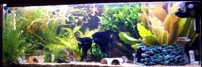 Here are some pics of my 172 litre/42 gal tank - thought I would take some quick pics as I am clearing out the angels which are too tall for the tank now, and also selling off the kribs which I have bred so far. I have also have a good prune of the plants since taking these pics.