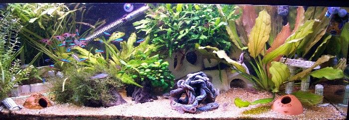 Here's a few pics of my 172l/42gal tank - this was previously home to some angels, yo-yo loaches and some tank raised kribs (see here)