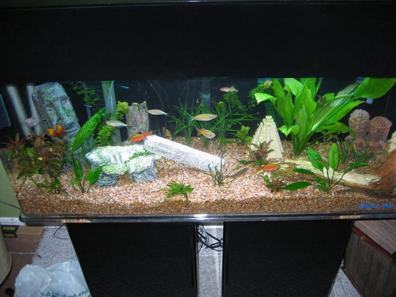 Recently we were moving some of our tanks around and temporaily placed ours in my 200 L Angel tank. This tank was overpopulated with snails (the small ones). After about 15 minutes in the tank he made a meal of about 20 or so snails! So, if you have a problem with small snails, try one of these guys! They have a personality all their own! Watch out for small fish though. Mine has already claimed my little neons. He also really likes frozen bloodworms.