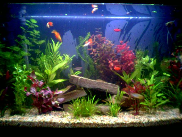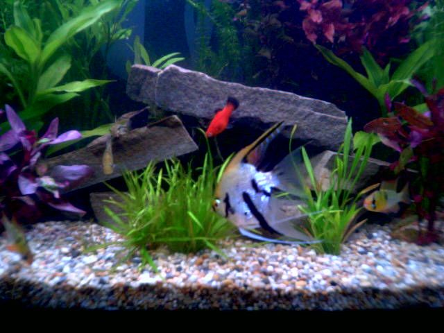 I look at that, and it reminds me of my tank, but heck yours has that nice feel to it, excellent job there matey... What gets me, you seem to have the same sort of fish in there, as i have, except the angel fish there But you have done a tumbs up job there