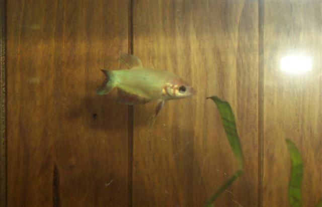 These days, the term Mustard Gas (or "MG") is used, incorrectly as it happens, to describe any bicolored fish that possesses a green, blue, or steel blue body and yellow or orange fins. This particular color combination has, in fact, been in existence about as long as the Non Red gene itself, since it is fairly easy to breed an iridescent betta to a Non Red betta and get iridescent/yellow bicolors by the 2nd generation.