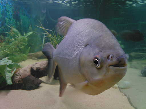 He looks greatbut be careful with him banging on the tank as Pacu's have been known to smash the glass