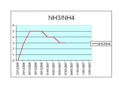 The current NH3/4 reading could be slightly lower than 3, the colour was mid way between the colours on the ref chart, so I took the highest reading !