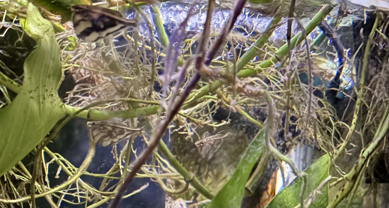 the thick pothos roots in the tetra tank limit the clear space for a mighty leap...