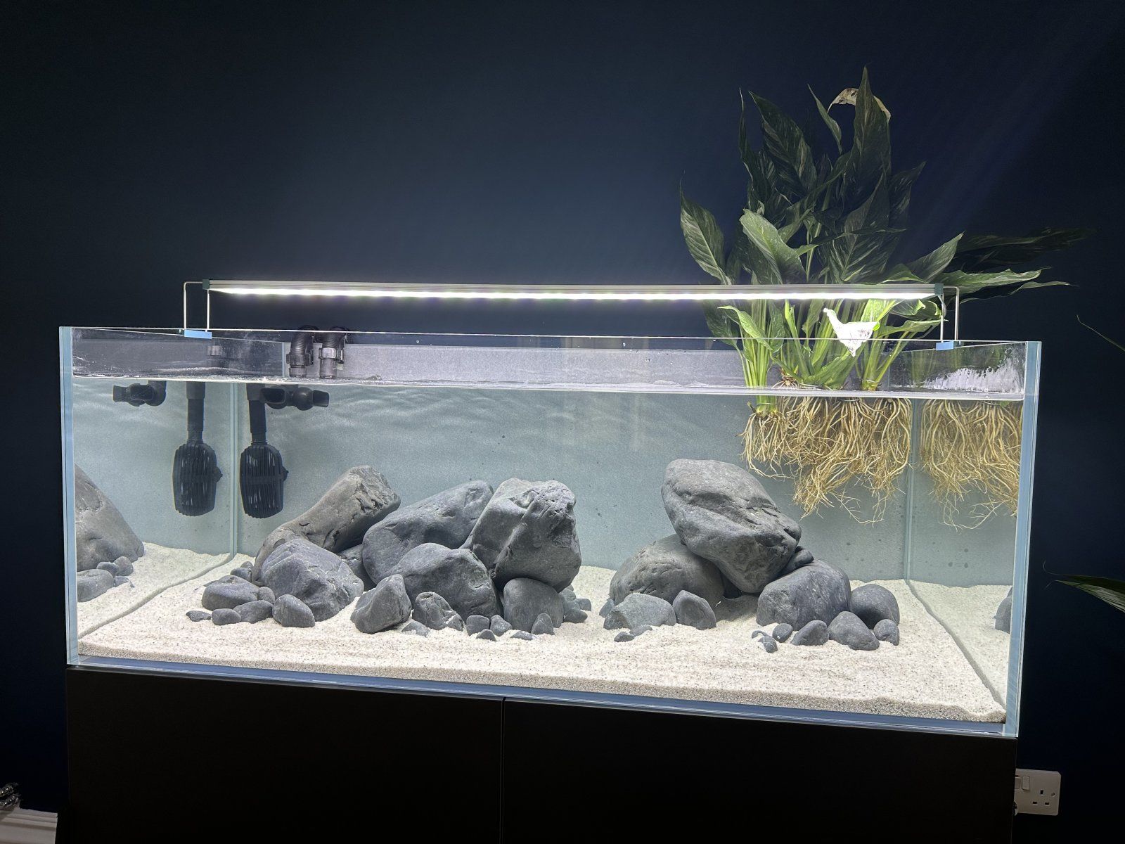 @Seisage 's, I'm starting to see and finally really get the elegant appeal when the fish are the focus, and the decor is the natural wood and stone of their habitat, with perhaps just some emersed or floating plant.