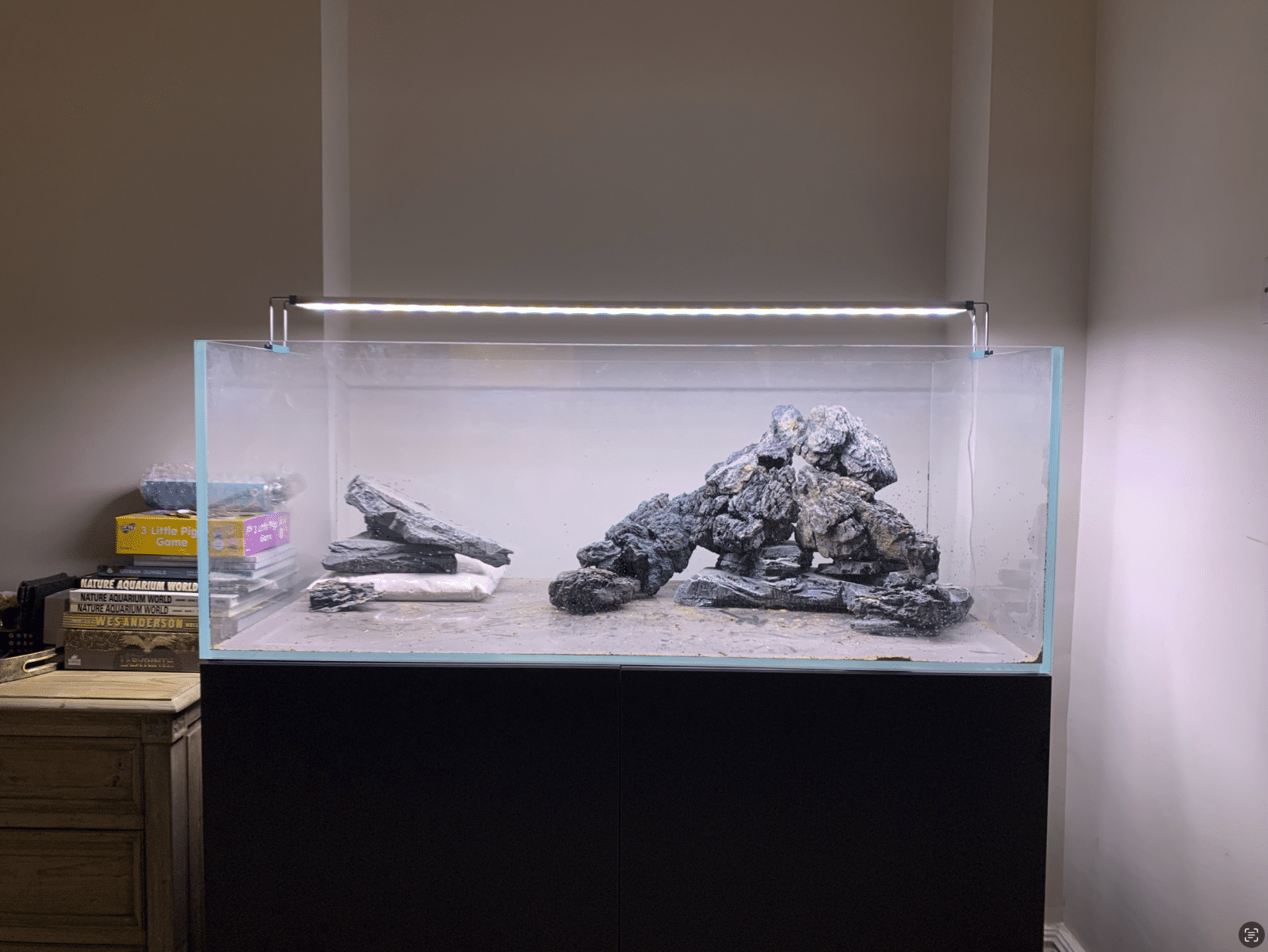 With my rock hard water, I'm quite lucky in the sense I dont have to use a limestone rock or coral substrate to get there (for once) so I'm going to use a decorative sand as well not sure which one yet but I really like the Hugo Kamishi ranges, really good natural stuff and a good price as well - not far off the ever popular play sand prices really and a few more options. You can't really see it in the photos here so far but I quite like how the light is playing through the rocks so I think I'm going to do a frosted background rather than a black one but time will tell...