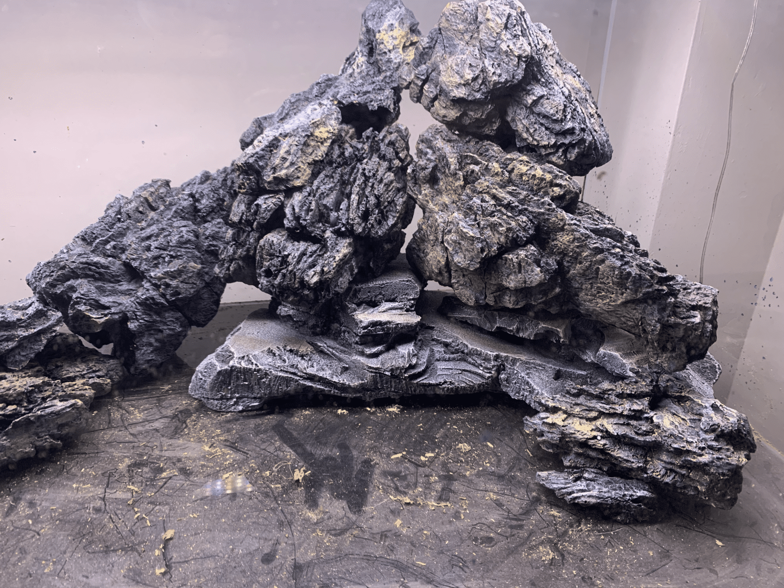 Then onto the next bit of fun... the scape. Another part of the Malawi life that I find daunting is all the rocks... I'm far too clumsy anyway and it seems like a recipe for disaster haha! I've looked into loads of options, I went to aquascaping shops and nearly spent £500 to get the right selection for a tank this size, I've trawled around garden centres looking at various kinds of slate and neither route is what I wanted. I did find a good mix of black limestones at good sizes but it was hard to track down locally and by the time I had I found a variety of artificial rocks which is what I've ultimately decided to go with.
