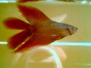 Here's another pic for ya sue, isn't his tail interesting? Also - you can notice that he has twice the length of a single tailed betta's dorsal fin. That's due to twice the number of rays in it, just like his tail. I think it's a pretty neat trait, along with the tail!