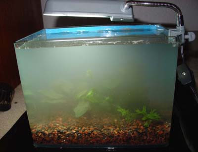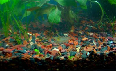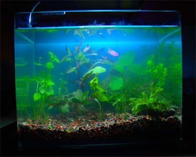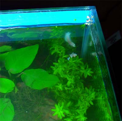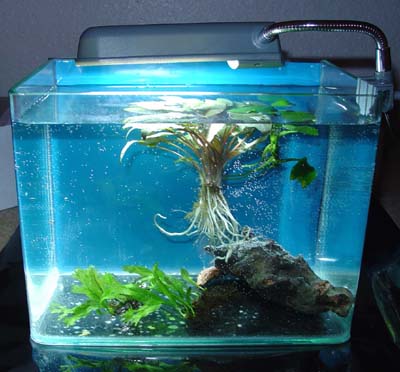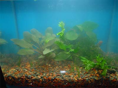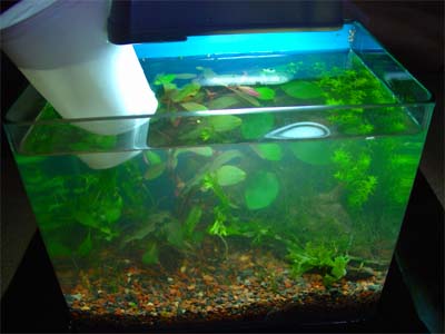 Right now it has a juevenile betta in it, but when the betta out grows the tank, I'm going to swap it out for the lil' gouramis.
