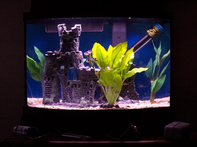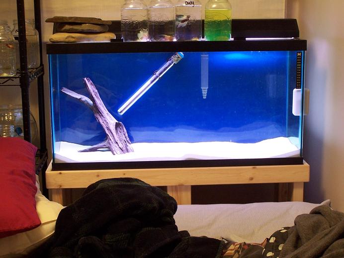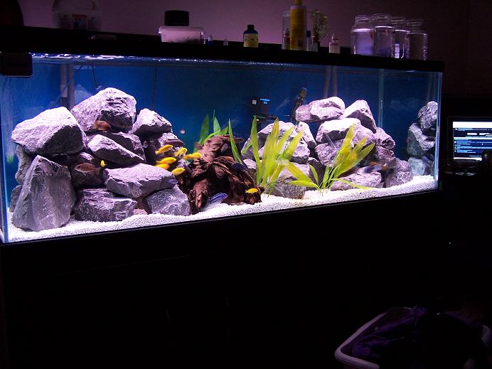 Occupants are fry, of the cichlid variety and my 2 remaining L-128's, one passed, poor feller. Gonna get more soon though, I think...they have become my favorite pleco, they are beautiful AND seem to be cleaning their own tank. Still don't see how that is possible, but...BONUS!