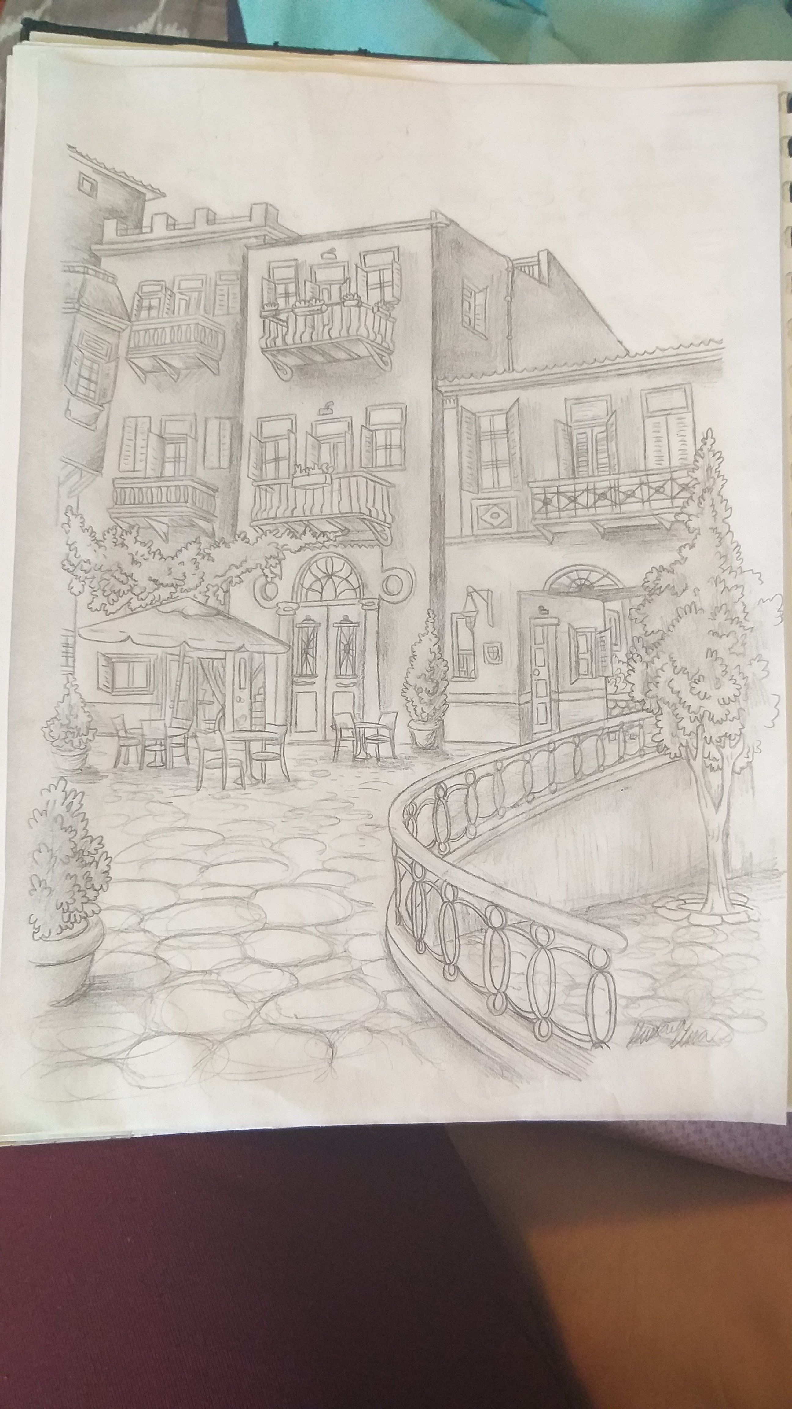 I was considering that but I'm scared I'd mess it up lolYou could color that italian cafe scene with Colored pencils... would look even better