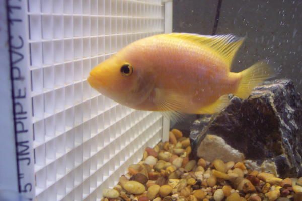 lol yeah ryan he is, now to figure out who is who... I have picked out two names, Thanatos, and Aries, so far it looks like the midas is going to be Aries, he is already agressive and eating like a pig and took some pellets and krill so he is going to be a hog, as for the pike he is just chilling out in a dark tank cause of the fact that he flopped on out of the net and hit the tank lid on the way into the tank.