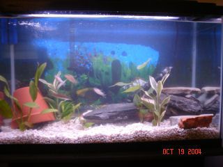 well i took a pic of my tank today after i put some rocks and such in for the fish a few plants where added also still small at size though..... my kribs are loving the rocks finding new caves and hiding places