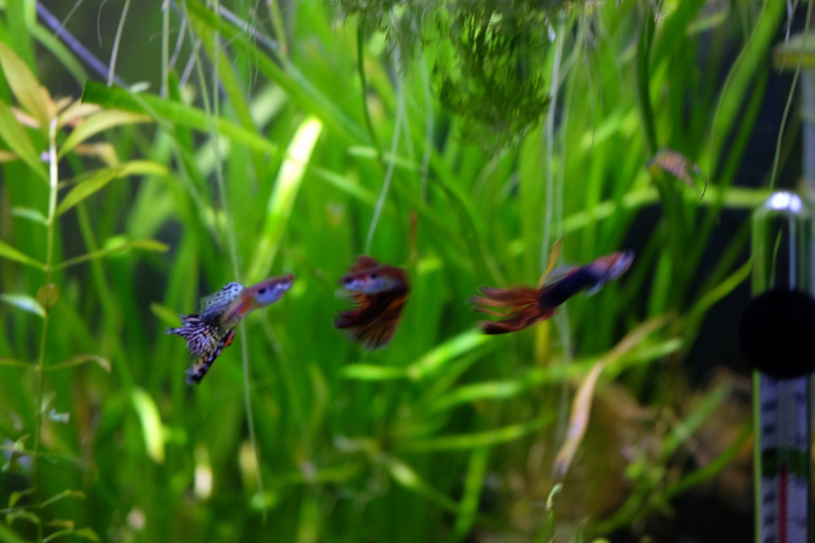 Sadly, because I had a male only tank, including him before I knew it was fin rot, I now have several males who are affected to different degrees. Have also lost several. They can live with minimal damage for months, or like him, for more than a year! Or it can progress relatively quickly, eating away at their tails. Had to euthanise one yesterday, because he was staying on the bottom breathing hard, his tail almost completely gone. I hate that I think of this as the doomed to die tank now (they're no longer with the pygmy cories, or any other livestock). These are the males I kept when I stopped breeding livebearers, my favourites, and the adults I'd bought to produce the fry, so I'm attached to these individual fish, and has been breaking my heart to see them slowly lose their tails, then having to euthanise when it's become severe. Sometimes the edges get worn away, or look as though they've had chunks taken out of them, and sometimes they split into ribbons.
