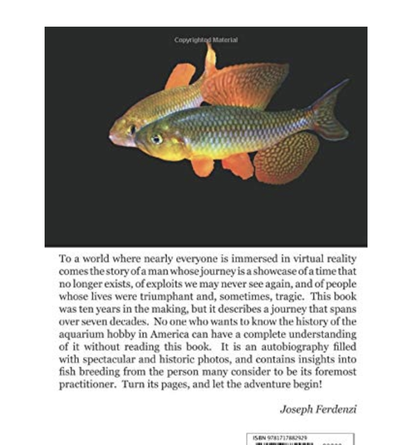 I have my own Rosario LaCorte story even here in Montana . My best friend in the whole world , who , sadly , passed away in December 2016 at the young age of 62 , and who was an accomplished fish breeder himself had a correspondence going with Rosario LaCorte . Greg had some very hard to obtain killies that became sick and close to death and mentioned it to Mr. LaCorte lamenting that he loved the fish and wanted to breed them . Rosario LaCorte said “ don’t give up on them , cure your fish “ and diagnosed them by email and gave the cure . The fish did pull through and Greg succeeded with them . I was very impressed by that . We still have people like that in the hobby who will help anybody but we should all do our part too . Oh , and by the way , I want that book !