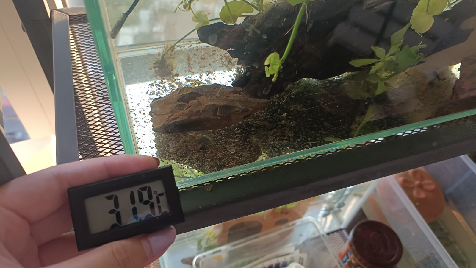 31.9°C?! But I'm too broke to get a chiller. This is at Singapore at the afternoon. My tank is Infront of the window.