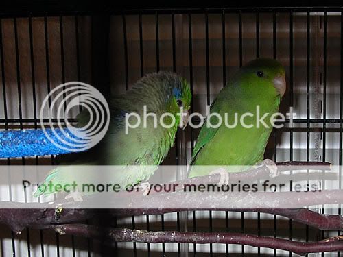 Joule, my female Pacific parrotlet, and her mate Petri have been trying to get their groove on for a good while now, even though I haven't supplied a nest box. Considering they hadn't got it right yet I wasn't too worried, but now it looks like Joule is carrying an egg!! I'm worried and excited at the same time! It'll be her first egg, so I'm hoping she doesn't have any trouble passing it, and it's gonna take me about a week to get their nestbox mailed to me from my parents' house, so she's probably going to end up laying it on the bottom of the cage... generally the first egg doesn't hatch anyway though, so hopefully it will work out, and if not I'll have to transfer it to the box myself.