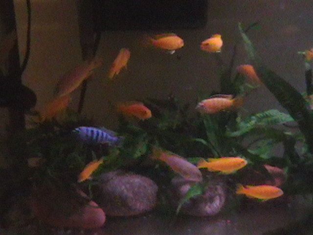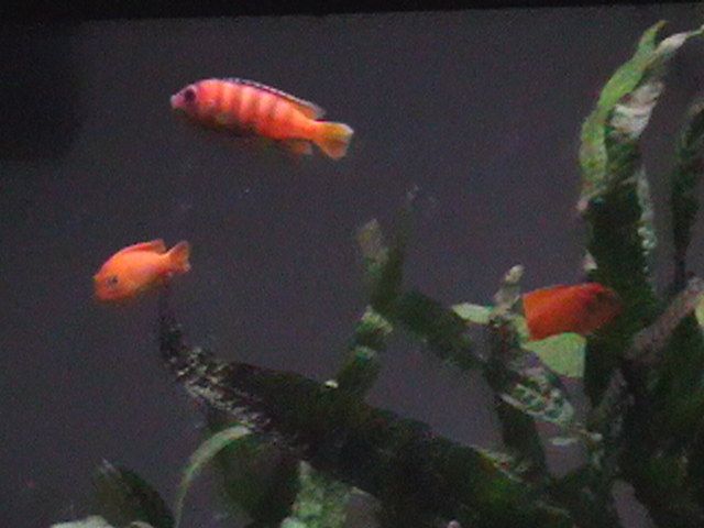 Hi all , I posted these fish about 3 weeks ago, Id like to show you their progress, I have 2 males about .50 colored. I also have 4-5 more males starting to color, These are great fish they start out yellow-orange and at 1.5 the male turn blue with black stripes. I plan on putting the fry from these in a large tank and having only this 1 species in it. Thanks
