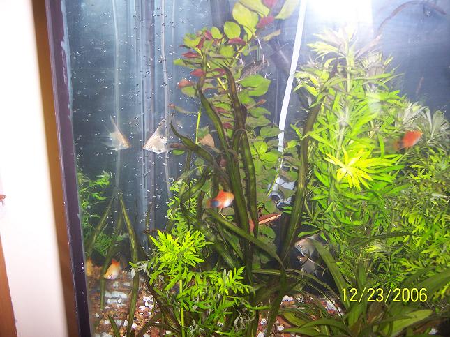 AND OF COARSE I CANNOT FORGET THE SOON TO BE LORDS OF THE TANKS. 5 ADOLESENT GOLDEN ANGELS. AND 2 "WATERFALL" JAPANESE MARSH SHRIMP. IF YOU HAVE NOT SEEN THESE BEAUTIFUL CRUSTATIONS, GO CHECK THEM OUT. THEY ARE WONDERFUL. BEST OF ALL THEY ARE FILTER FEEDERS. NO HARD TO ANY PLANTS OR FISH. BUT WHEN MY ANGELS WARM UP TO THEIR NEW HOME AS WELL AS THE SHRIMP I WILL GLADLY GET YOU ALL SOME PHOTOS OF THEM. BUT THESE PHOTOS HERE YOU CAN SEE SOME OF THE ANGELS AND THE SHRIMP.