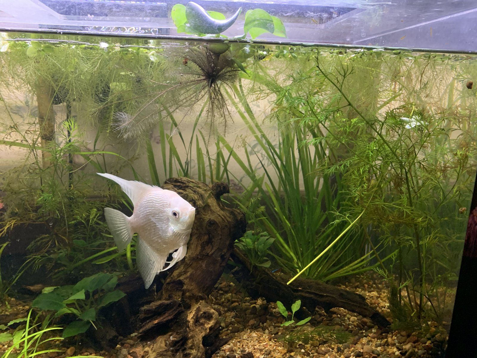 I work at an aquaculture research facility and I thought I'd share a few pictures of the 400 litre display tank that I've been responsible for for the past 5 years. There's a minimal hardscape, it's almost entirely vallisneria plants. I planted a couple about 3 years ago, alongside other plants, but the vallis took over and I like the look, there is no CO2 and no fertilizer input. Apologies for the picture quality, my phone is 5 years old and cheap.