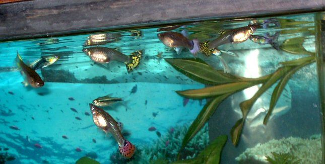 55gallon i cant really see any of ur pics lol... might need to turn the flash on..... that female guppy of yours is faaaaat... i wish mine would get thaat fat
