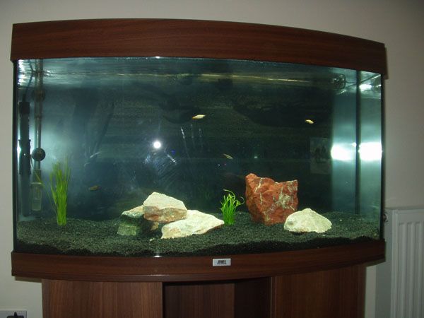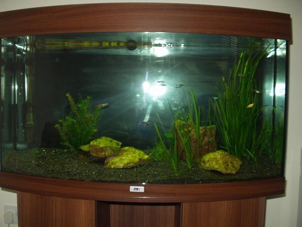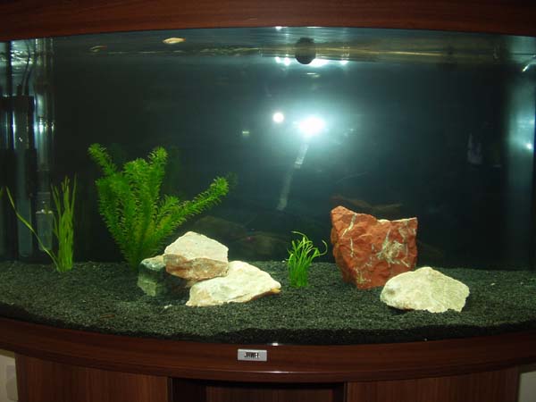 Eco-complete substrate topped with Roman black gravel. Tetratec 700 filter, T5 lighting. 2 Golden white Cloud and two white cloud mountain minnows. I intend to add more plants if these survive (the plants) and increase fish with similar size varietys as the tank is on the small side although have not decided on which fish yet. Excuse rear glass as requires a clean.