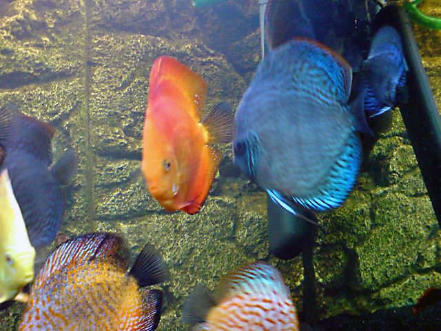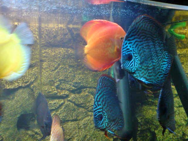 hes your son or are you kidding? love the discus. what size tank are they in? love the pigeon bloods in the second pic (correct me if im wrong)