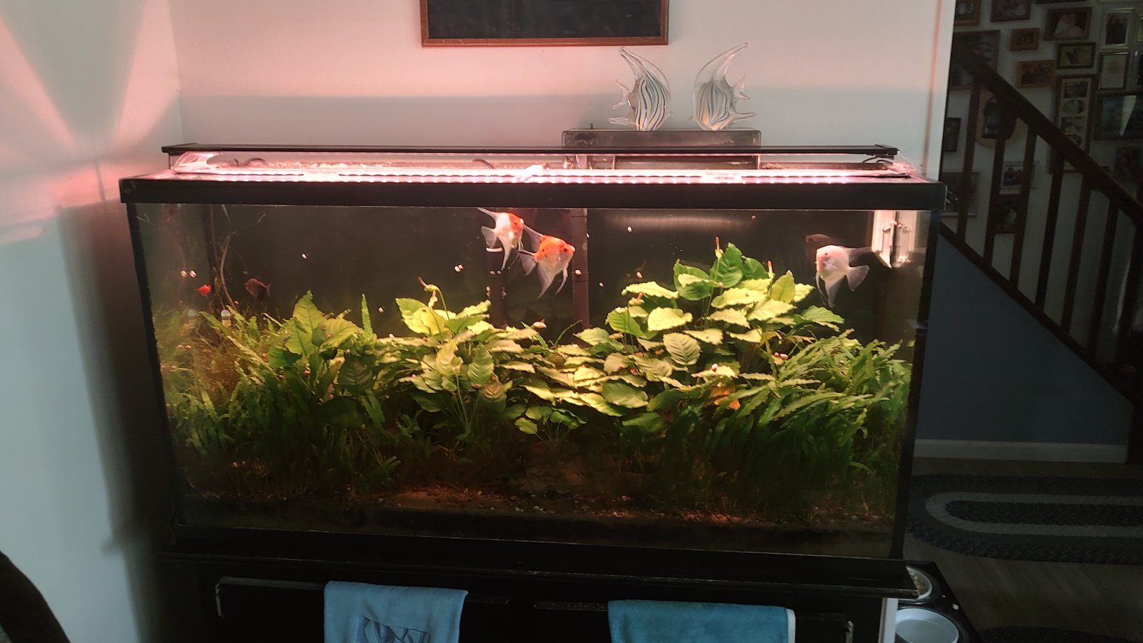 (admittedly, some pruning is in order). Living plants help filter the water. I feed fish modestly and I do not use ferts. I only clean the filter when exit flow is significantly reduced. Call me a crazy old man, but I believe that a natural balance is achieved.