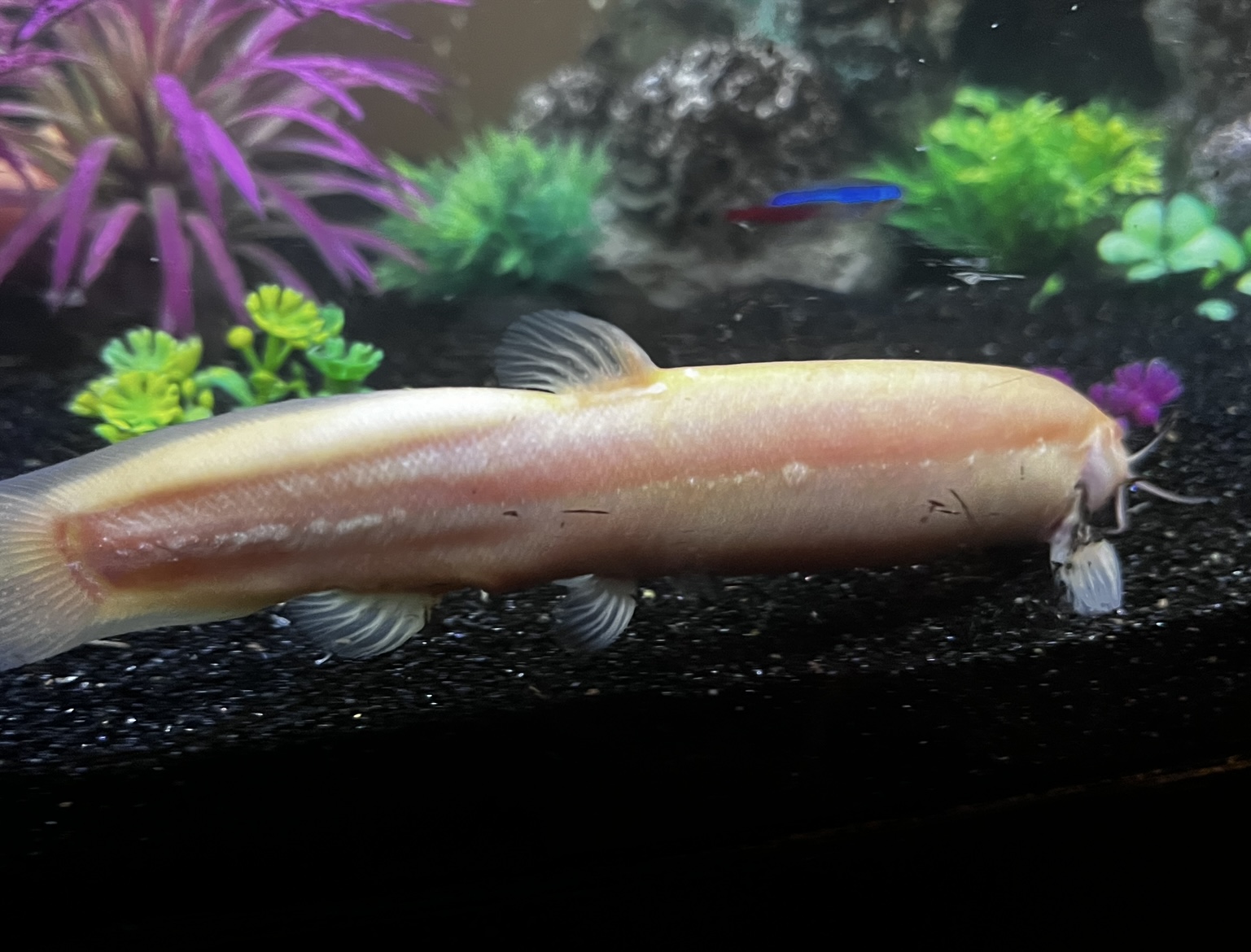 I've never kept weather loaches, but even albinos can show some "pink on white" color/striping variations I believe. I've always wanted to keep them! So I've done research on them. Your last pic seems to show more red/pink by its head & back from mid-body, I'm not sure that is an issue or a camera/lighting angle.