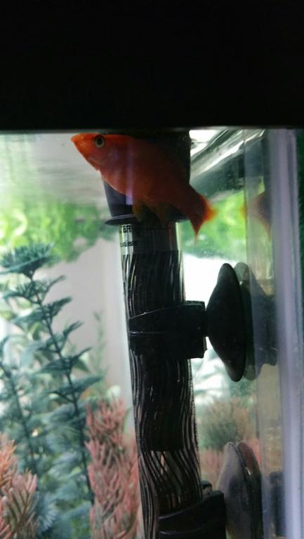 So I went ahead and placed my pregnant swordtail into the tank with my fry. She doesn't seem to bother the fry at all. Chases them at times. And I noticed this morning that she has stopped eating and she's pacing up and down the glass like she did last time she gave birth. So I think I put her in just in time! We will see in the next couple days if she has them! If not tonight!