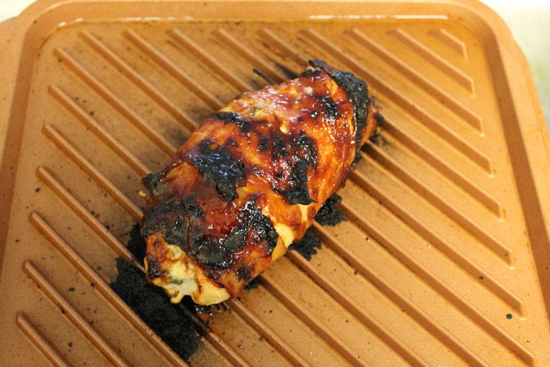 As a note I used a Gothom ceramic slotted griddle to cook the chicken as shown in the following image. The slotted surface makes so that you do not have to 'flip' the chicken as there is air flow through the slots of the pan. I LOVE this grill!