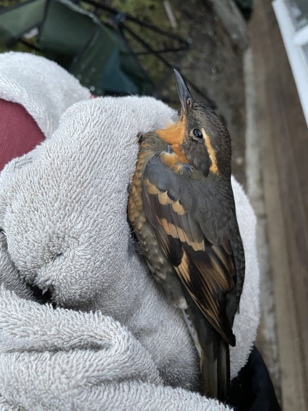 I believe you have a male varied thrush (Ixoreus naevius). What a beauty! Good save. Cats gotta hunt, I understand, but I wish they'd stick to the invasive species!Anyone know what type he is?View attachment 306464