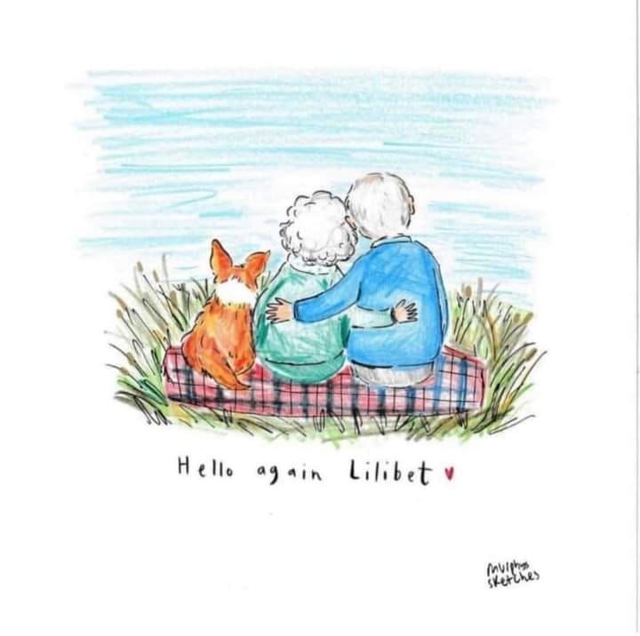 I was sent this sketch by a friend of mine in the US......the Queen, her beloved Philip and one of their Corgi's reunited...and it totally and unashamedly got to me